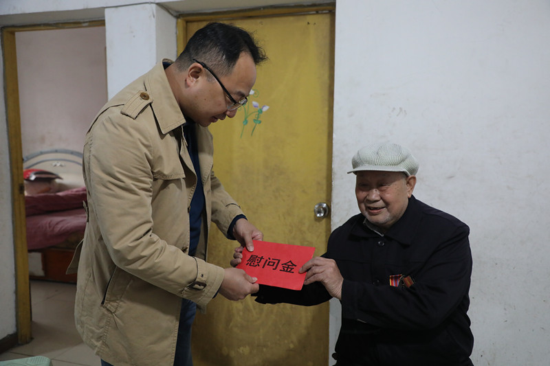 今年是中国人民志愿军抗美援朝70周年,为铭记历史,缅怀先辈,球速在线注册组织开展了看望慰问抗美援朝老兵活动。11月3日,球速在线注册党委副书记、工会主席谢建国,人力资源部部长秦云中,保卫部部长陆维侃,代表公司党、政、工看望慰问抗美援朝老兵——蔡大明,向他表达组织的关心,并致以崇高的敬意。